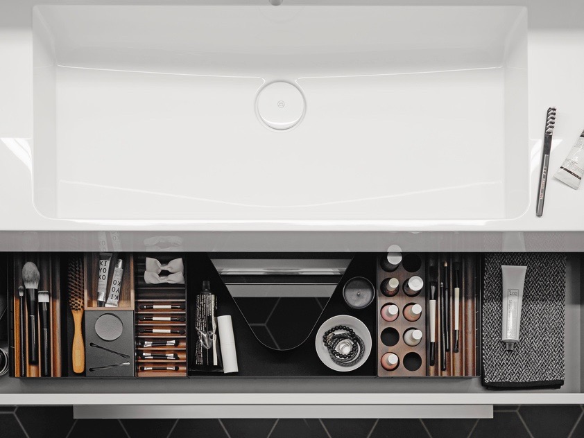 Platzsparend unter dem waschtisch montiert, verschmelzen die unterschränke von villeroy & boch mit der.